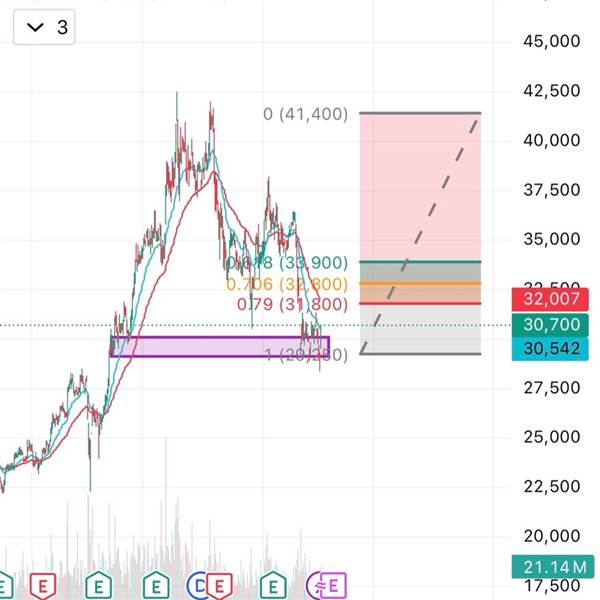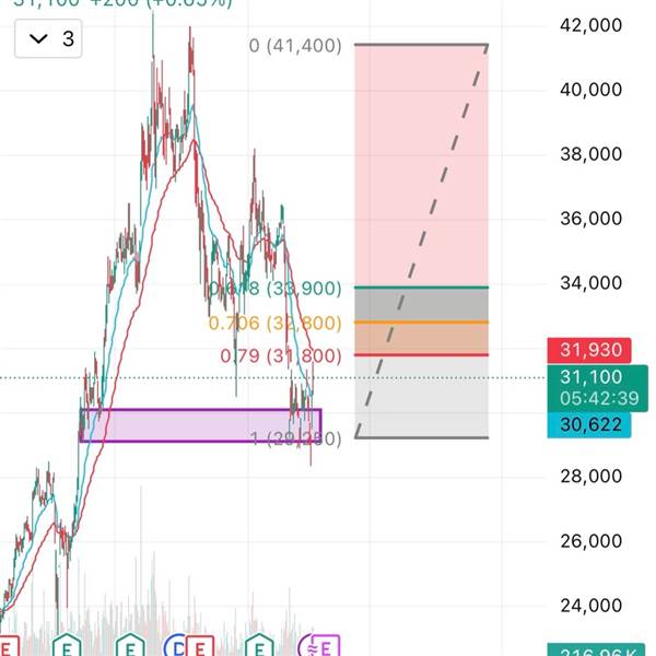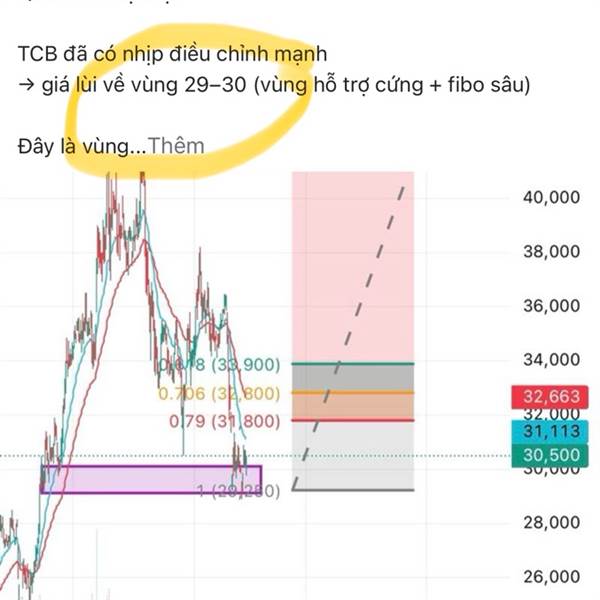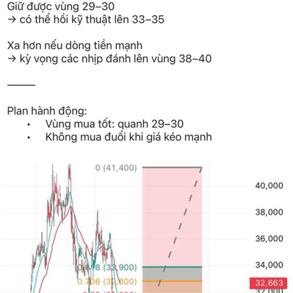 → giá lùi về vùng 29–30 (vùng hỗ trợ cứng + fibo sâu)