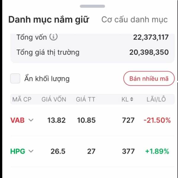 Ae giữ vốn chú ý dòng tiền....ko cần phải canh giảm hay tăng...khi khối lượng giao dịch trên 1,5 ~2tr/ ngày và cổ bắt đầu bẻ xanh đi lên thì ae bắt đầu xuất vốn...chia ra cứ như có 6 tỷ thì chia 4 phầ...Thêm