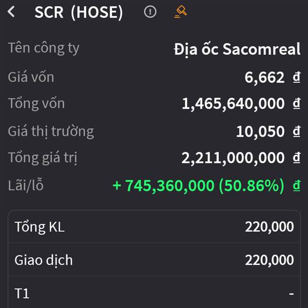 Tôi mà cần SCR là tôi làm phép khỏe lãi ngày để hôm nay +5%. Rất tiếc là mình đã bán hết.