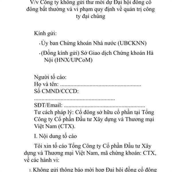 2. Bác nào giỏi đơn từ gửi lên uỷ ban ck nhà nước, thậm chí là công an