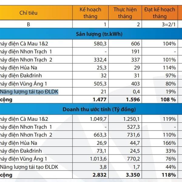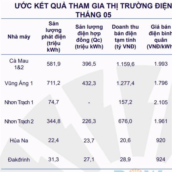 Tổng công ty Điện lực Dầu khí Việt Nam Tình hình KD tháng 5/2024 và kế hoạch tháng 6/2024: