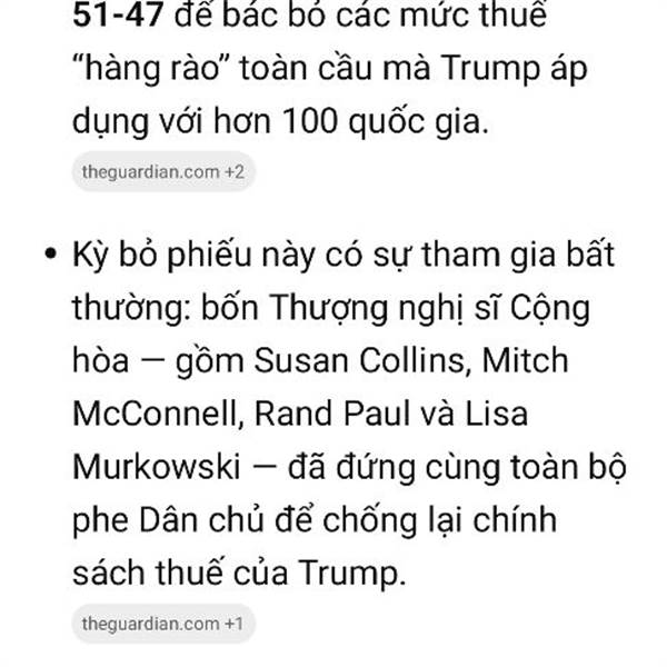 Thượng viện Mỹ bỏ phiếu bác bỏ thuế đối ứng của Trump, cơ hội thuế cá về 0% lớn dần.