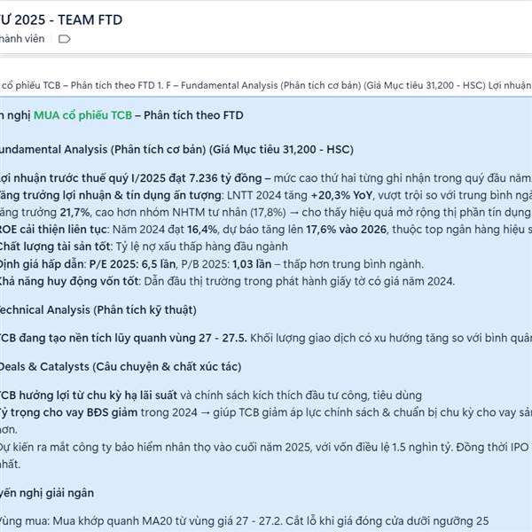 Khuyến nghị MUA cổ phiếu TCB – Phân tích theo FTD