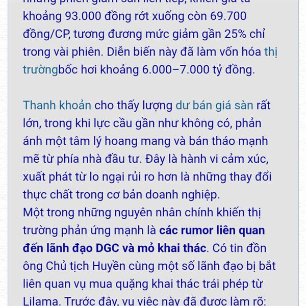 Thật chất đé.o có tin chính thống gì cả, tự mõm rồi nhỏ lẻ tự hoang mang. Gia đình DGC giá có xuống 10 thì họ cũng ko mất 1 cp nào cả vì họ ko đi vay nên họ ko có bị bán giải chấp đâu🥴 đây là cơ hội ...Thêm