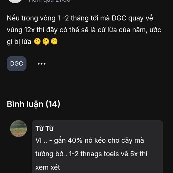 Ai cắt thì cũng đã cắt rồi, lỗ thì cũng đã lỗ rồi, giá cũng đã giảm mạnh rồi. Phân tích abc cũng vậy thui 🤣 thông tin hiện tại là mù tịch . Tốt nhất là nên rời xa con DGC này, không phải vì nó liên q...Thêm