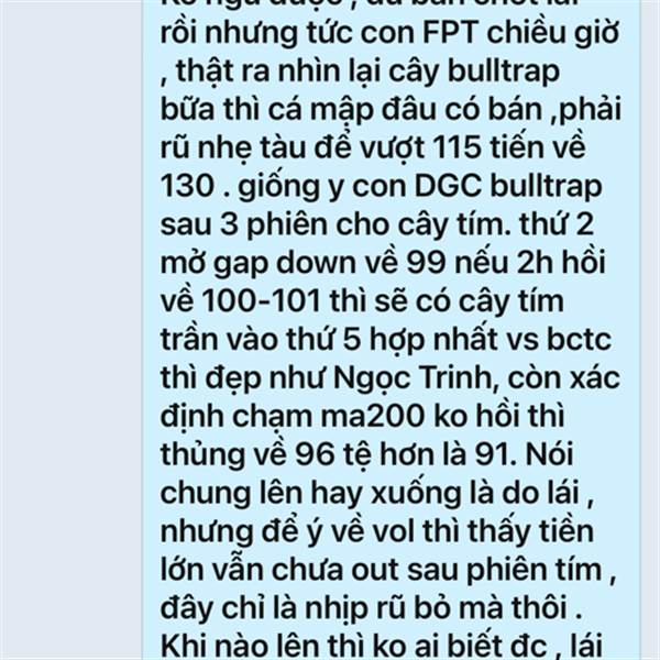 Ngàt thứ 2 khá quan trọng nếu thủng 100 thì test lại đâu đó 96,97 . còn nếu bật lên thì xđ cây ngày thứ 5 tím kéo vượt