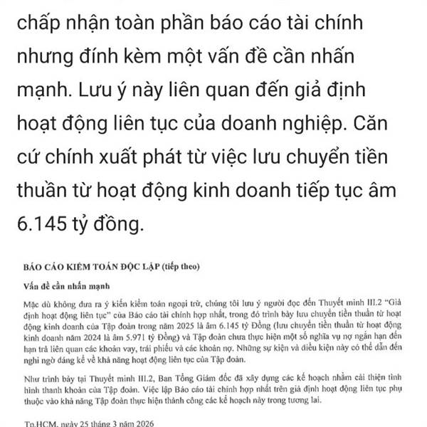 Kiểm toán "nhấn mạnh khả năng hoạt động liên tục" thì có được cấp lại margin không mọi người. Cái này mình không biết nên mới hỏi, không có ý chim lợn nha!
