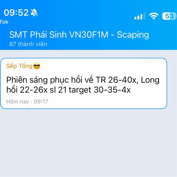 Phiên sáng phục hồi về TR 26-40x, Long hồi 22-26x sl 21 target 30-35-4x
