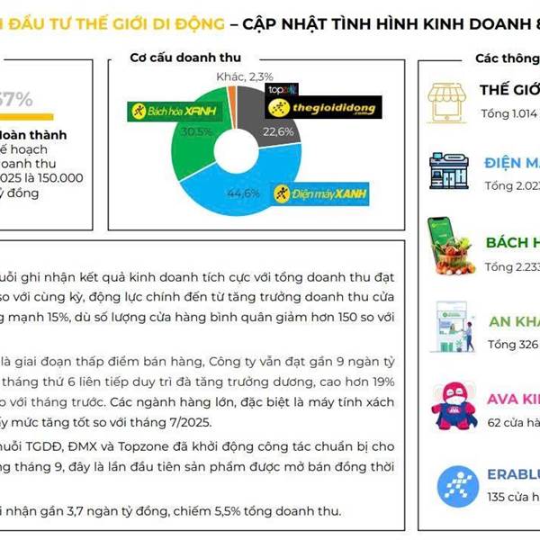- Lợi nhuận của BHX đang cải thiện từng tháng sau khi giảm mở mới, và chuẩn bị kế hoạch Bắc tiến 2026. - Doanh thu 2 chuỗi điện tử điện máy lên vùng cao nhất lịch sử hoạt động