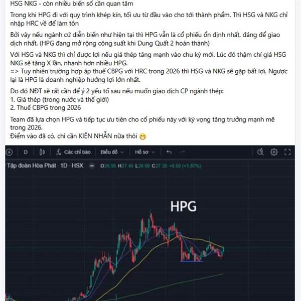 Vận động của HPG luôn vậy, lình xình đến mức NĐT phát chán. Đến khi kéo thì gần như NĐT đứng ngoài đều bị bỏ rơi hết hoặc phải chấp nhận mua với mức...Thêm