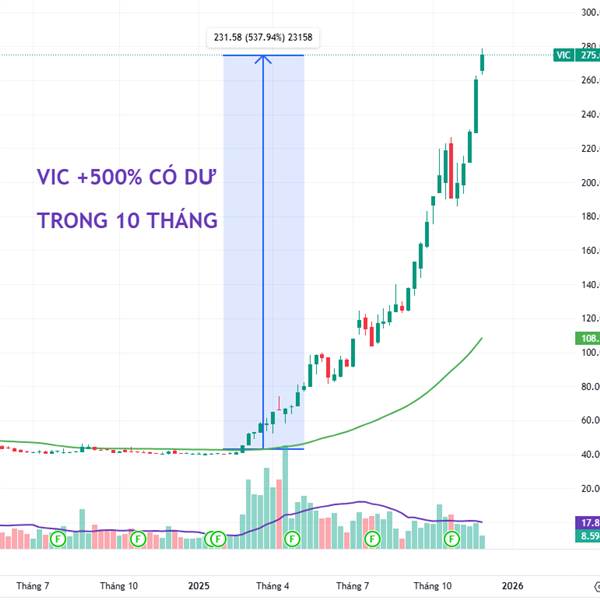 VIC hiện là một trong những cổ phiếu có vốn hóa lớn nhất sàn: phiên 10/10/2025, VIC đã tăng kịch trần lên 192.000 đồng/cổ phiếu, đẩy vốn hóa của Vingroup lên mức kỷ lụ...Thêm