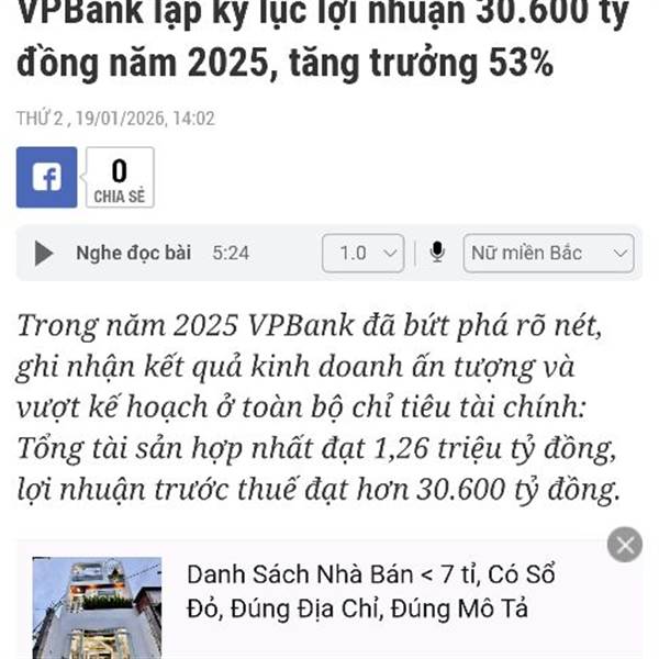 Trong năm 2025 VPBank đã bứt phá rõ nét, ghi nhận kết quả kinh doanh ấn tượng và vượt kế hoạch ở toàn bộ chỉ tiêu tài chính: Tổng tài sản hợp nhất đạt 1,26 triệu tỷ đồng, lợi nhuận trước thuế đạt hơn 30.600 tỷ đồng.