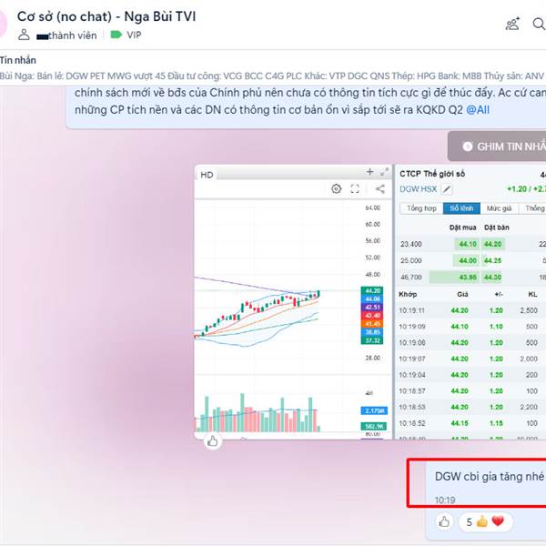 Thị trường tiến về mốc 1150 với đa số CP blue kéo cuối phiên HPG BID MWG MSN, thanh khoản đạt trên mức trung bình. Hôm nay chúng ta có DGW đã đạt target,...Thêm