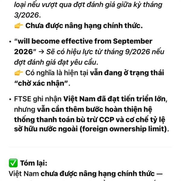 Để được nâng hạn thì yếu tố minh bạch của thị trường là quan trọng. Tương lai gần thị trường sẽ nâng hạn!