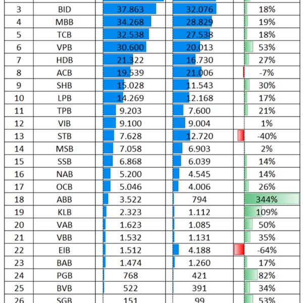 LNTT 2025 VCB 44K tỉ,CTG 43,5 K tỉ, BID trên 37 K tỉ