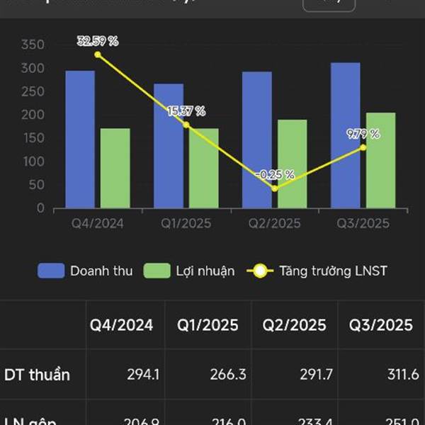 Q4 vượt trội. Cùng q1 tăng 5% giá. Lợi nhuận vẫn quá ổn tăng dần đều đặn.