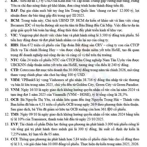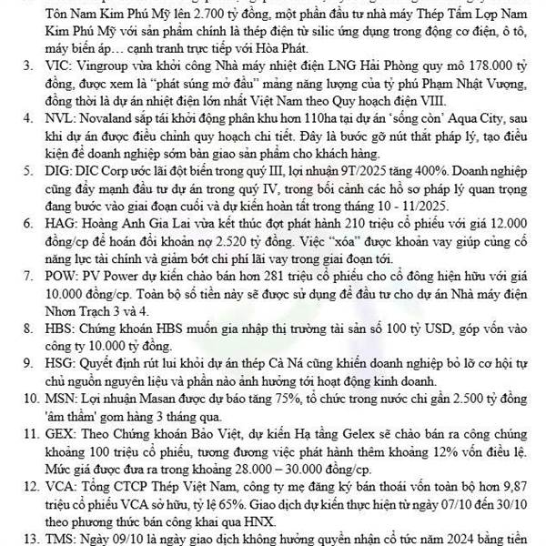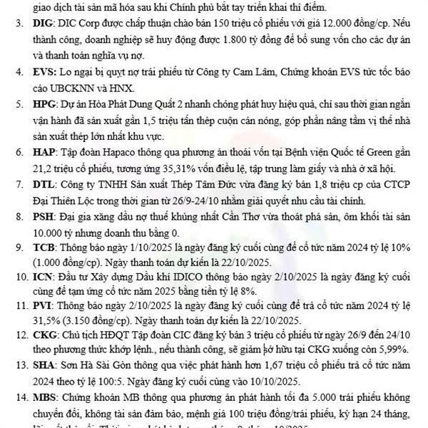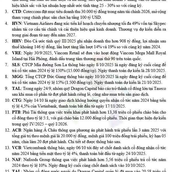 TIN TỨC DOANH NGHIỆP 01/10/2025