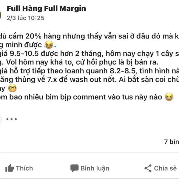 Qua tuần khả năng test về 9.9 tạo đáy 3 rồi lên sau là ổn.