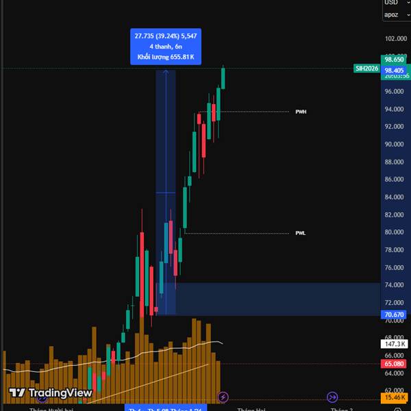 Khi hết năm 2025 nhiều người nói đà tăng của Bạc đã hết, sắp tới sẽ có nhịp chỉnh mạnh nhưng câu chuyện từ đầu năm 2026 đến nay, bạc đã tăng trưởng gần 40% 😱