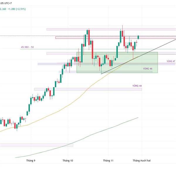 Bạc phản ứng với vùng hỗ trợ quanh 49$ và đã xuát hiện lực mua tương đối tốt trong phiên hôm qua.