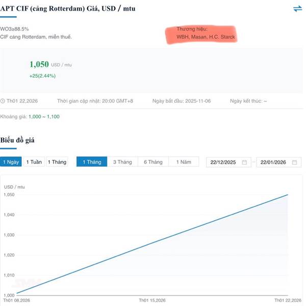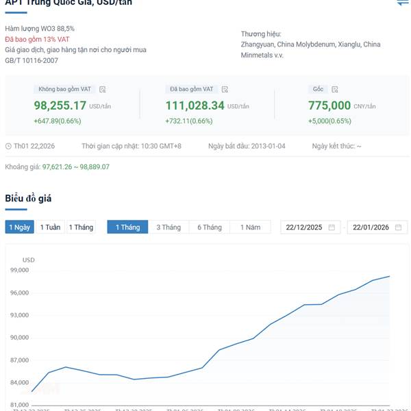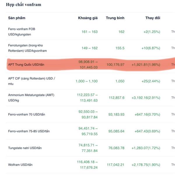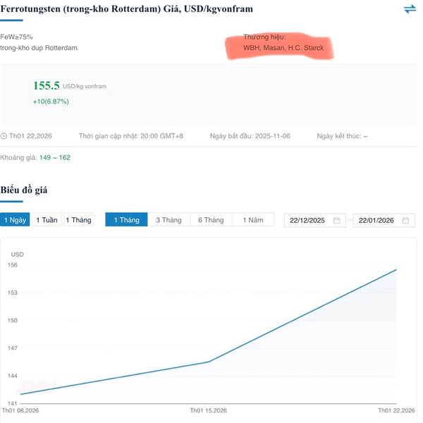 Cổ Vonfram bên Trung Quốc 1 tháng tăng 50%, MSR chạy chậm thế nhỉ