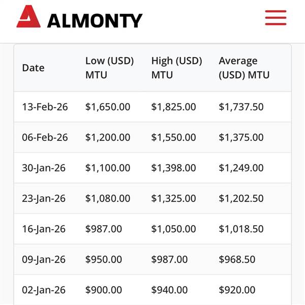 Giá vonfram sắp chạm 2.000$/MTU. Sau Tết MSR tăng bao nhiêu đây.