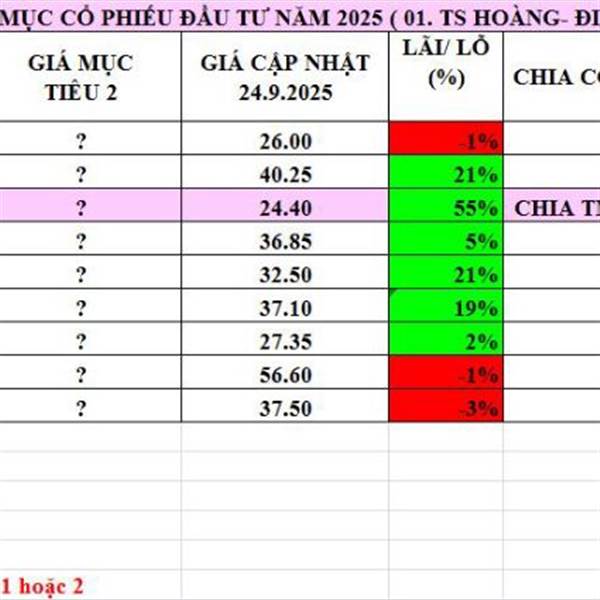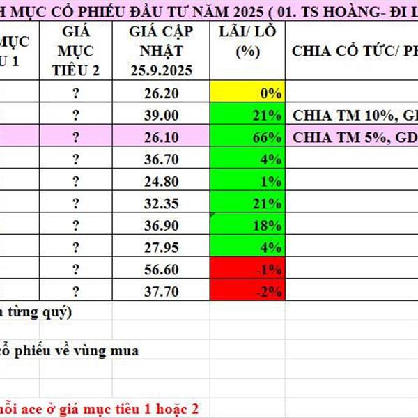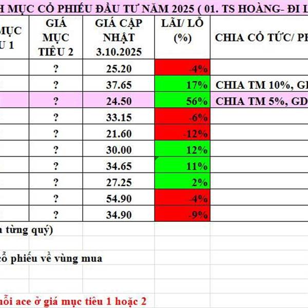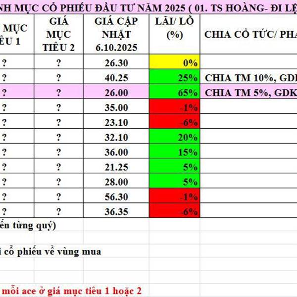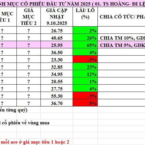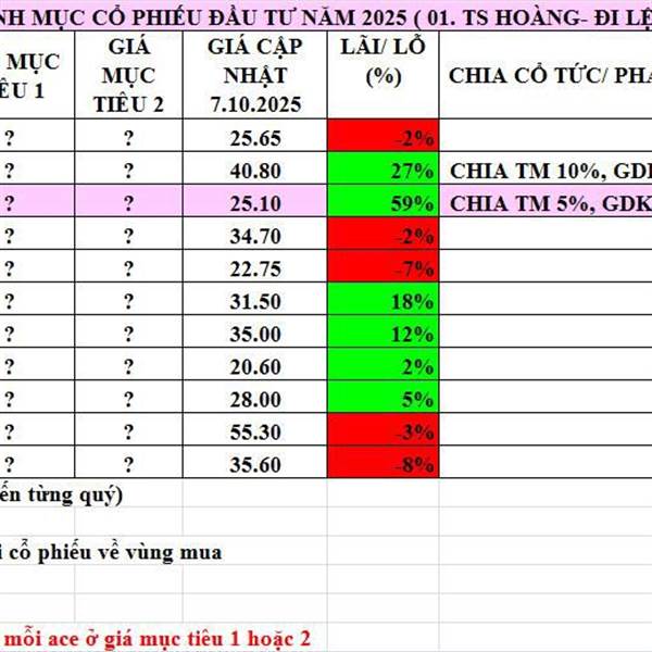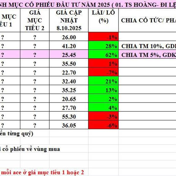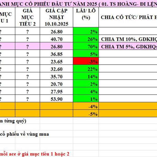 Cập nhật danh mục khuyến nghị 10.10.2025