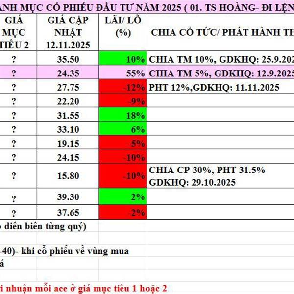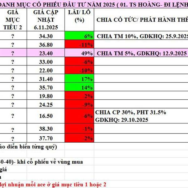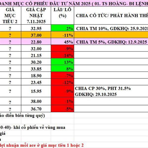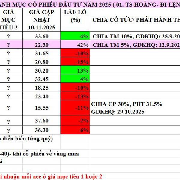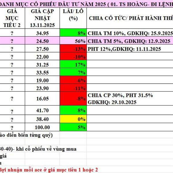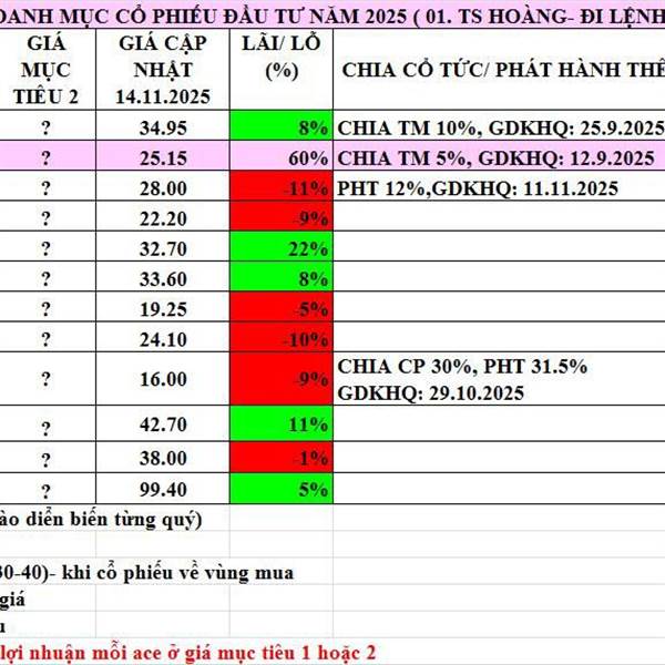 Cập nhật danh mục khuyến nghị 24.11.2025