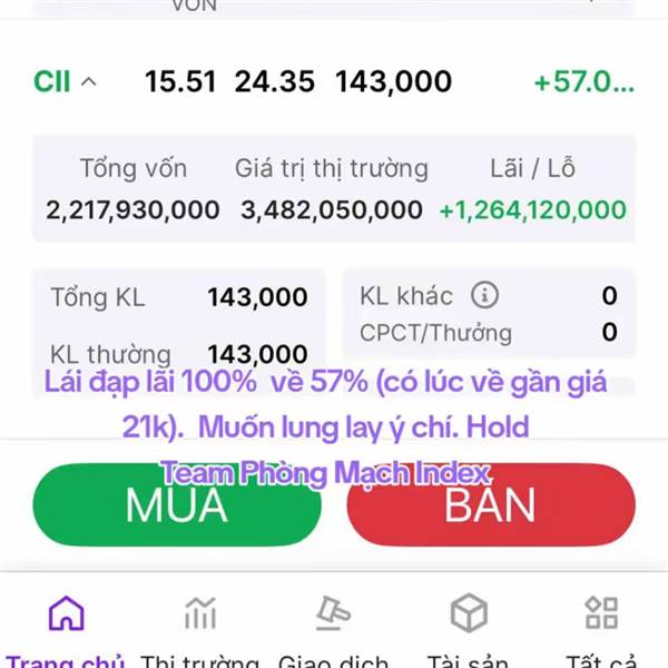 Lãi 100% đạp về 77% xuống còn 57% vẫn giữ. Giờ lên 71%