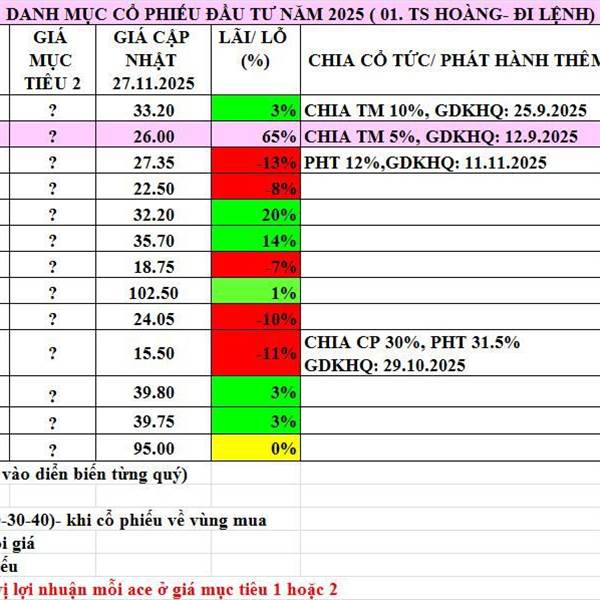 Cập nhật danh mục khuyến nghị 27.11.2025