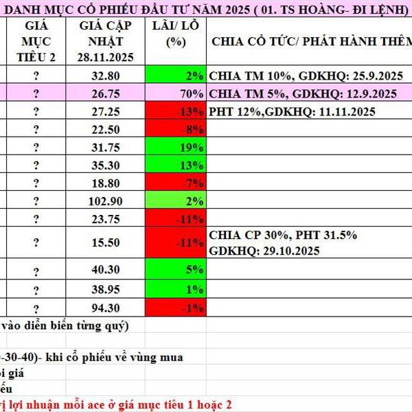 Cập nhật danh mục khuyến nghị 28.11.2025