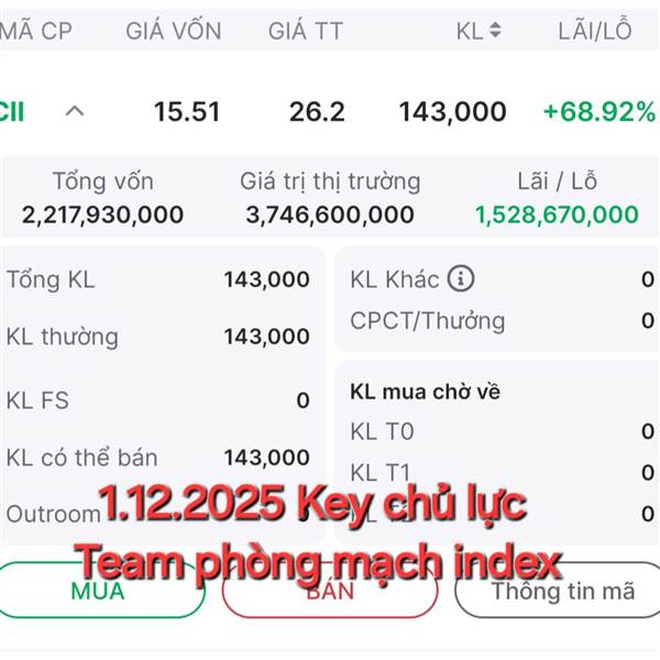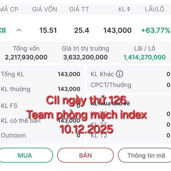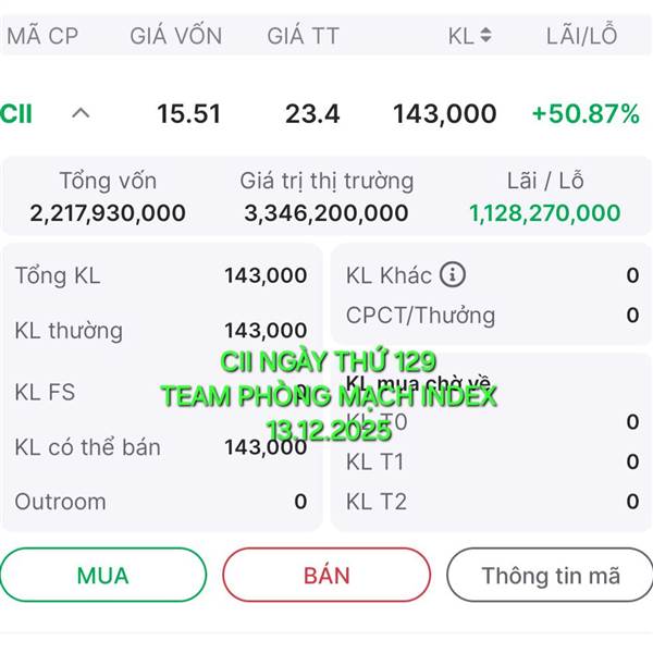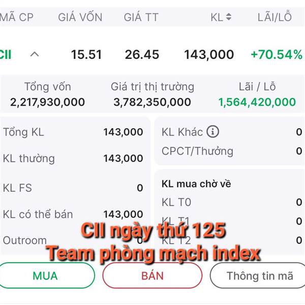 LÃI: CII,KBC,HDG,IDC,VHM,VPL,SSI
