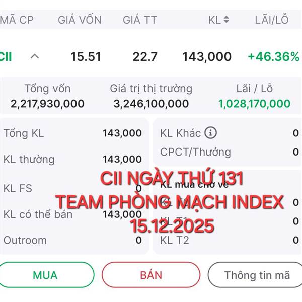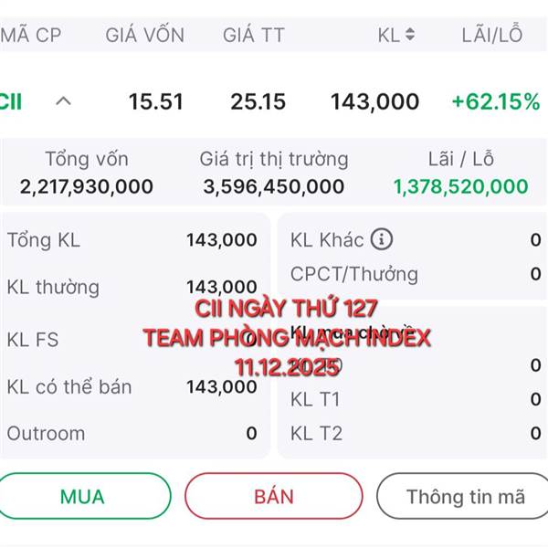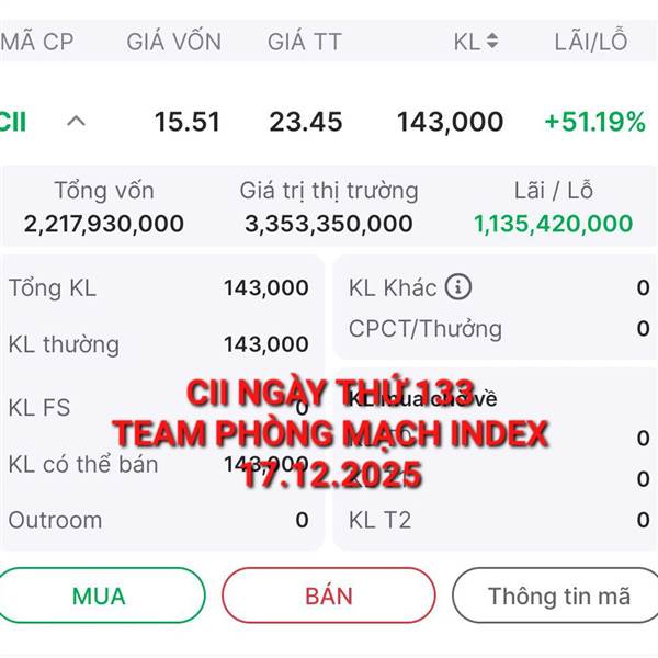 LÃI: CII,KBC,HDG,IDC,VHM,VPL