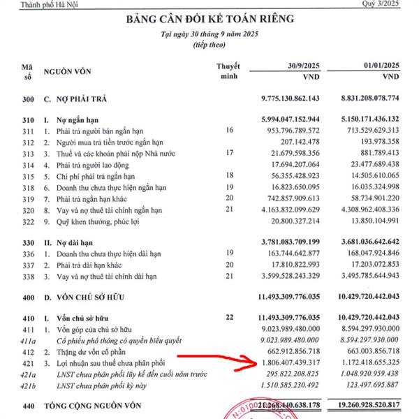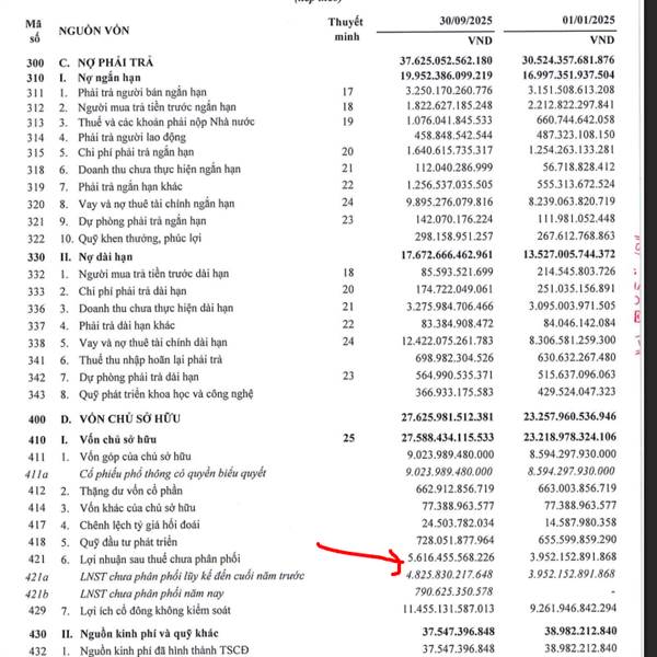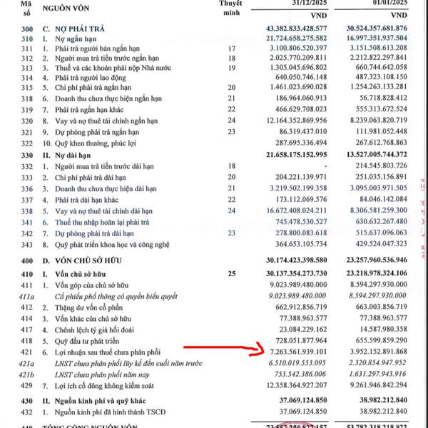 BCTC RIêng - Cty mẹ Q3 1806 tỷ LN chưa phân phối - Cty mẹ Q4 2753 tỷ LN chưa phân phối BCTC Hợp Nhất - Q3 5616 tỷ LN chưa phân phối - Q4 7263 tỷ LN chưa phân phối Tăng 1647 tỷ lợi nhuận Trong khi lợi nhu...Thêm