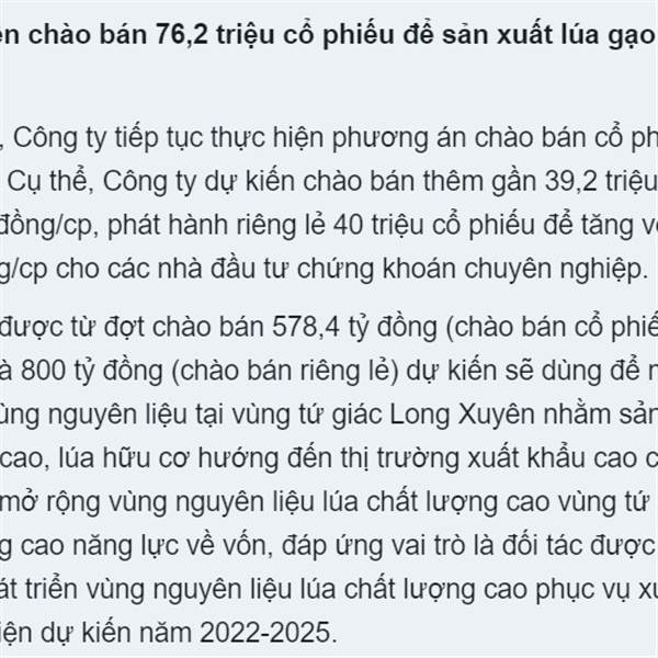 Ai dành bctc sẽ biết, năm nay TAR dự kiến phát hành 39,2tr cp cho cổ đông hiện hữu, 40tr cp cho NĐT chiến lược, 2 khoản này đã thu về cho TAR gần 400 tỷ thặng dư vốn cp=> cổ đông hưởng=> lời gấp mấy l...Thêm