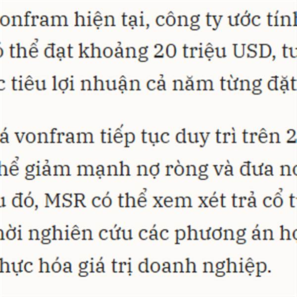 cổ mạnh thì vẫn phải mạnh thôi. ae thấy đang thiên thời địa lợi thế này nếu mà có nhà tạo lập thì họ đã muốn ngừng chưa. Mình nói thật về dài hạn cp khoáng sản hiểm chiến lượt như vonfram này sẽ không...Thêm