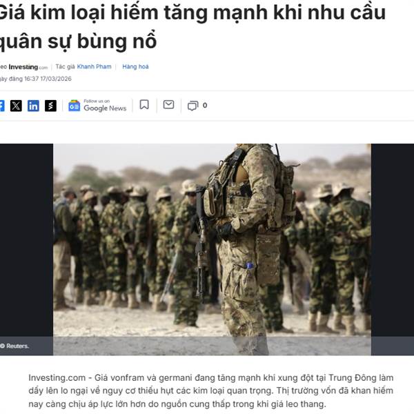 giá vonfram hợp chất hôm nay lại tăng tiếp đà này thì msr vô dối rồi. Qua cuộc chiến ở iran thì cả thế thới cùng chạy đua vũ trang đặc biệc là sản xuất uav cho chiến tranh thời đại mới. Mà uav thì dùn...Thêm