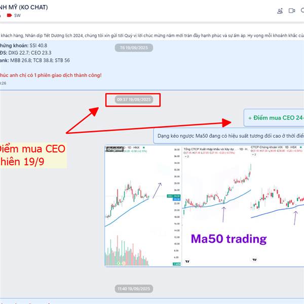 + Điểm mua CEO 24-24.5 phiên 19/9