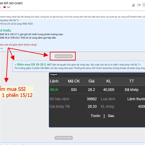 - Điểm mua SSI 28-28.3 lần 1 phiên 15/12