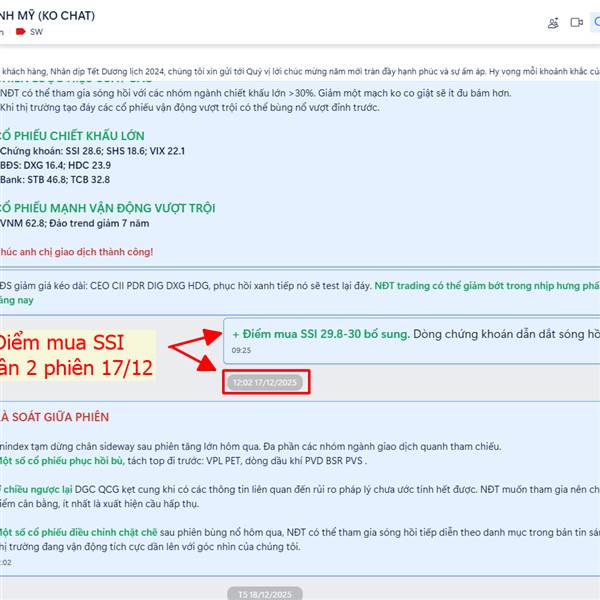 - Điểm mua SSI 29.8-30 lần 2 bổ sung phiên 17/12