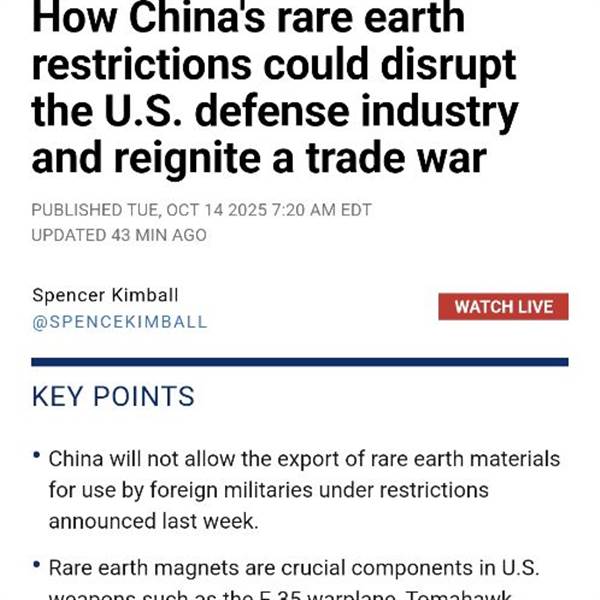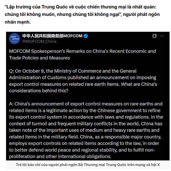 TIN MỚI: Trade Rep của Trump nói khả năng cao Trump sẽ trả đũa TQ bằng +100% thuế nếu TQ không từ bỏ các quy định kiểm soát và hạn chế xuất khẩu đất hiếm và một số khoáng sản quan trọng với Mỹ. Ae ngh...Thêm