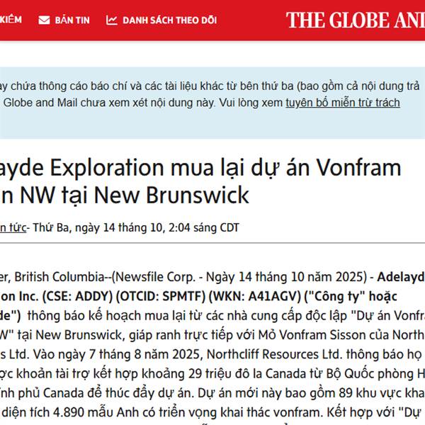 –– Trích nguồn: BNN Bloomberg –– "Allied Critical Metals set to anchor western tungsten supply from Portugal to the Pentagon"