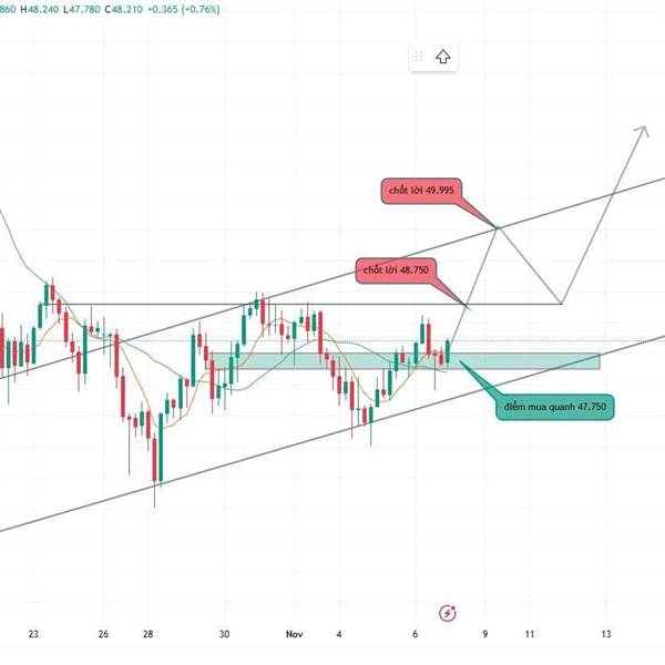 🔹 Xu hướng chính: Tăng trong kênh giá (Ascending Channel)