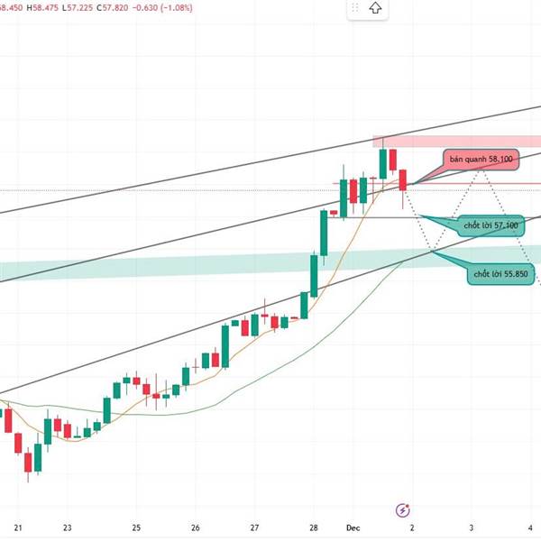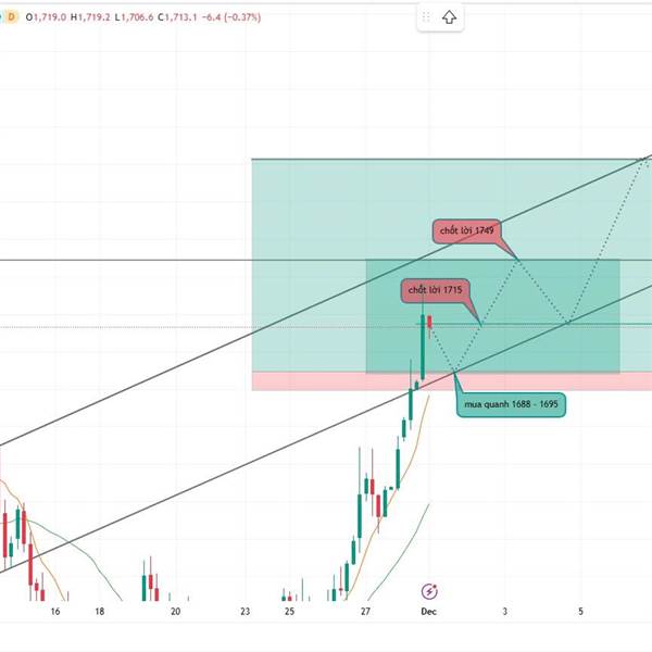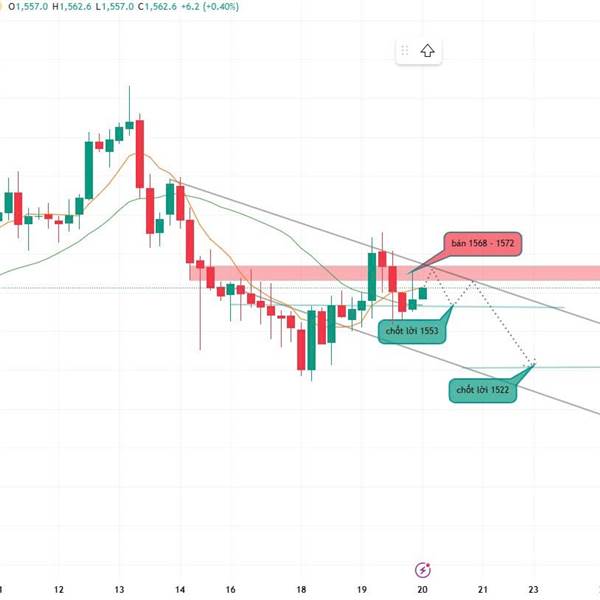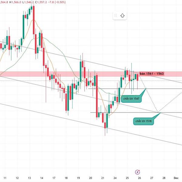 Giá bạch kim đang bị chặn bởi cạnh trên kênh giảm H4. Vùng 1561–1563 tiếp tục đóng vai trò supply mạnh, giá khô...Thêm