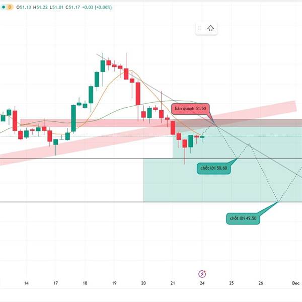 🔹 Xu hướng chính: Giảm – giá bị từ chối mạnh tại vùng kháng cự 51.40–51.60, duy trì trong kênh giảm H4.