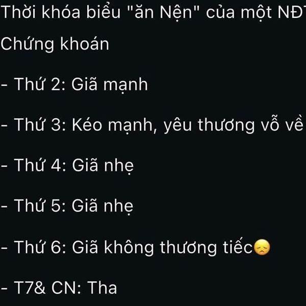 Mày đè, mày giảm suốt cả tuần. Tao phát xấu hổ vì mày VND ạ...