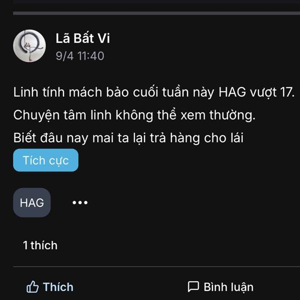 Chủ tịch chuẩn bị gom hàng thì rất có thể HAG lại về 14.x. Hàng nhà ai lại đi mua giá cao, đổ thóc đãi gà rừng bao giờ. Lên 16 thì bán về 14 lại mua, tốt đẹp cả phải không quý zị.