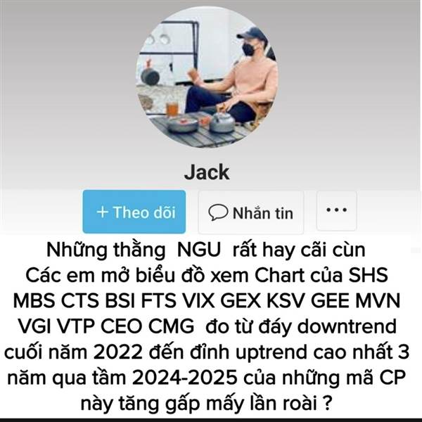 Ai mở Chart thông não cho thằng đần JACK này xem SHS MBS CTS BSI FTS VIX GEX KSV GEE MVN VGI VTP CEO 3 năm qua tăng gấp bao nhiêu lần rồi 😃