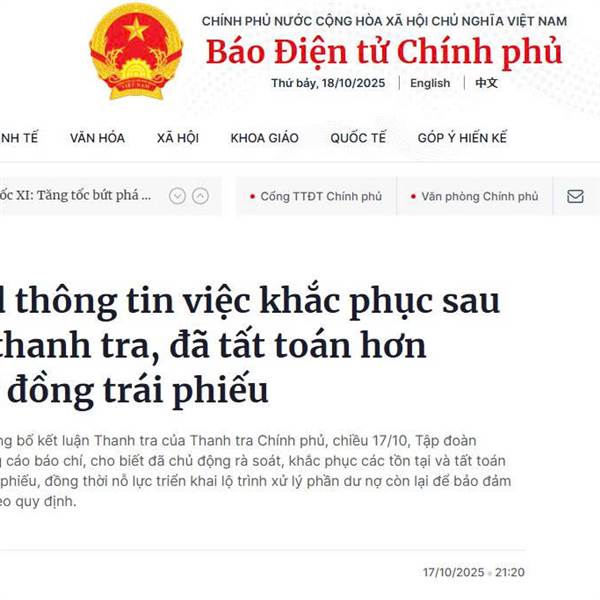 Novaland thông tin việc khắc phục sau kết luận thanh tra, đã tất toán hơn 15.000 tỷ đồng trái phiếu. Chinhphu.vn) - Sau công bố kết luận Thanh tra của Thanh tra Chính phủ, chiều 17/10, Tập đoàn Novalan...Thêm
