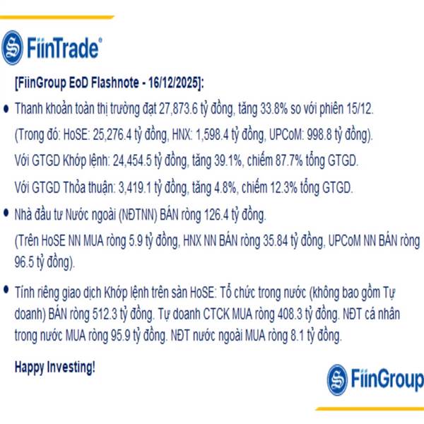 2/12/2025: Mua chủ động cải thiện cuối phiên, VNINDEX tăng hơn 15 điểm, khối ngoại đảo chiều mua ròng